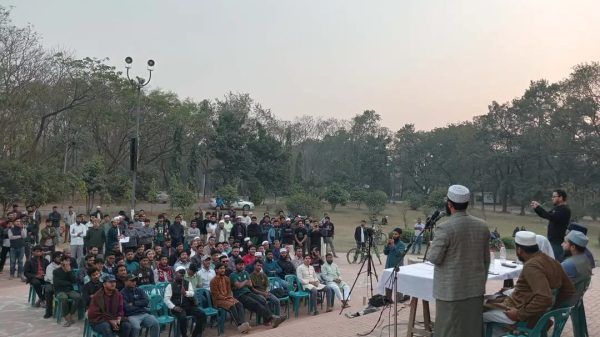 রামিন কাউছার জাবি প্রতিনিধি জাহাঙ্গীরনগর বিশ্ববিদ্যালয়ে (জাবি) হিম উৎসবে কুরআন নিয়ে ঔদ্ধত্যপূর্ণ ও আপত্তিকর মন্তব্যের প্রতিবাদে সুরা আন-নাসের তাফসির ও প্রতিবাদ সমাবেশ অনুষ্ঠিত হয়েছে।শনিবার (৭ ফেব্রুয়ারি) বিকেল ৫টায় বিশ্ববিদ্যালয়ের কেন্দ্রীয়