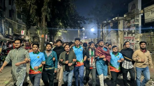 জবি প্রতিনিধি শেরপুর-৩ আসনে ইশতেহার মঞ্চে চেয়ারে বসাকে কেন্দ্র করে বিএনপি-জামায়াতের সংঘর্ষে শ্রীবরদী উপজেলা জামায়াতের সেক্রেটারি মাওলানা রেজাউল করিম খুন হওয়ার ঘটনায় বিক্ষোভ মিছিল করেছে জগন্নাথ বিশ্ববিদ্যালয়ের (জবি) শিক্ষার্থীরা। বুধবার