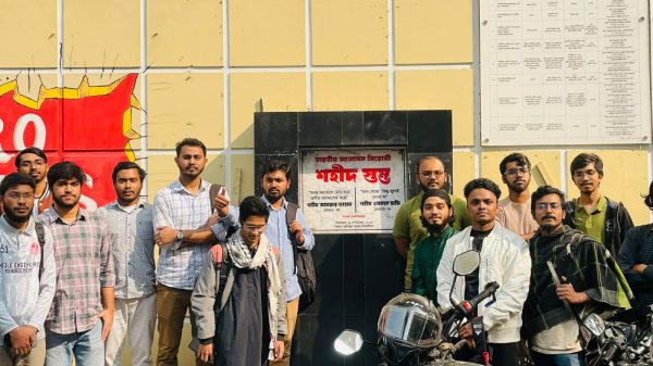 বুটেক্স প্রতিনিধি বাংলাদেশ টেক্সটাইল বিশ্ববিদ্যালয় (বুটেক্স) ক্যাম্পাসে ভারতীয় আধিপত্যবাদের বিরুদ্ধে অবস্থান নেওয়া শহীদদের স্মরণে এবং তাদের প্রতি সংঘটিত অন্যায়ের প্রতিবাদস্বরূপ একটি শহীদ স্তম্ভ স্থাপন করা হয়েছে। ২৭ জানুয়ারি (মঙ্গলবার) বেলা