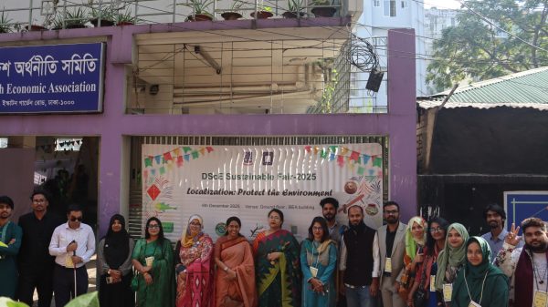 জাকারিয়া মোহাম্মদ ইমনইনস্টিটিউ অব ওউএলবীইং বাংলাদেশ প্রতিনিধি ঢাকা বিশ্ববিদ্যালয়ের ইনস্টিটিউশন স্কুল অব ইকনোমিক্স-এর পরিবেশ ও সম্পদ অর্থনীতি বিভাগের এনভায়রনমেন্ট ক্লাব ৬ ডিসেম্বর ২০২৫ তারিখে বিশ্ববিদ্যালয় ক্যাম্পাসে আয়োজন করে দিনব্যাপী “সাসটেইনেবল
